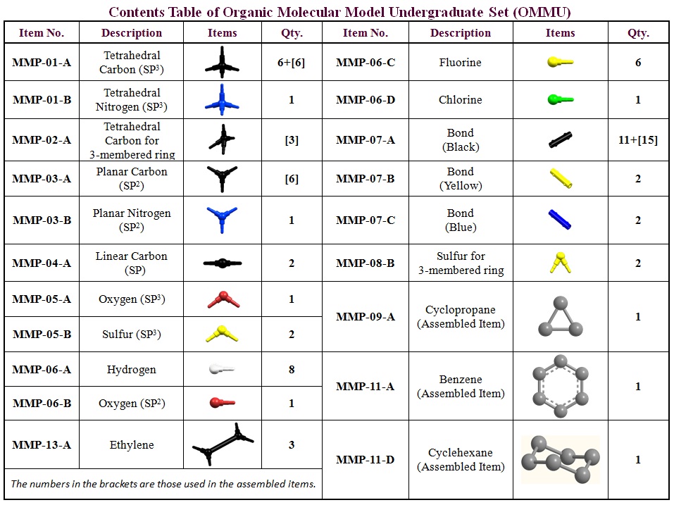 OMMU(分子模型本科生套装)包括70个配件。